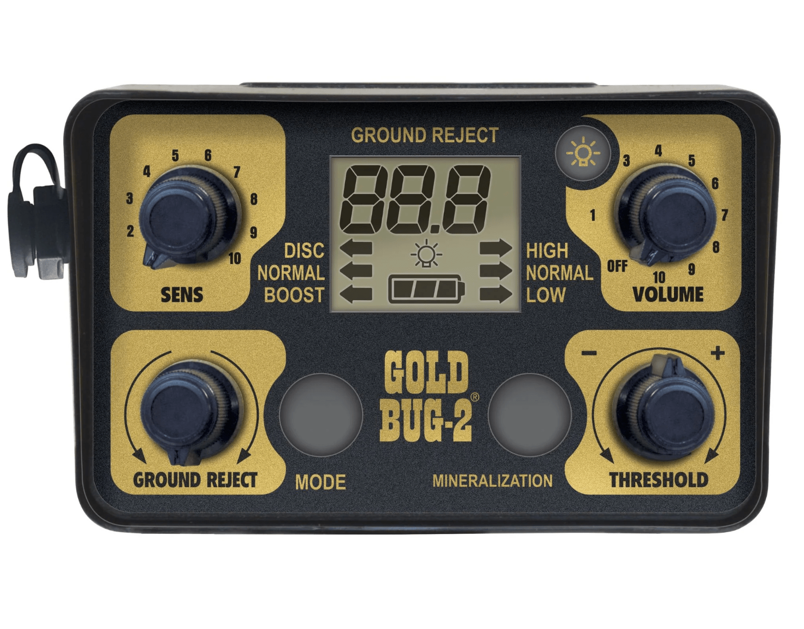 The Gold Bug 2 offers extraordinary sensitivity; at 71 kHz it features very high operating frequency. The Gold Bug 2 also features iron discrimination, is dust and moisture resistant, has audio-boost and can operate in any type of soil with the choice of three mineralization modes. In the Iron Disc Mode the detector can identify hot rocks and small iron trash items like nails.