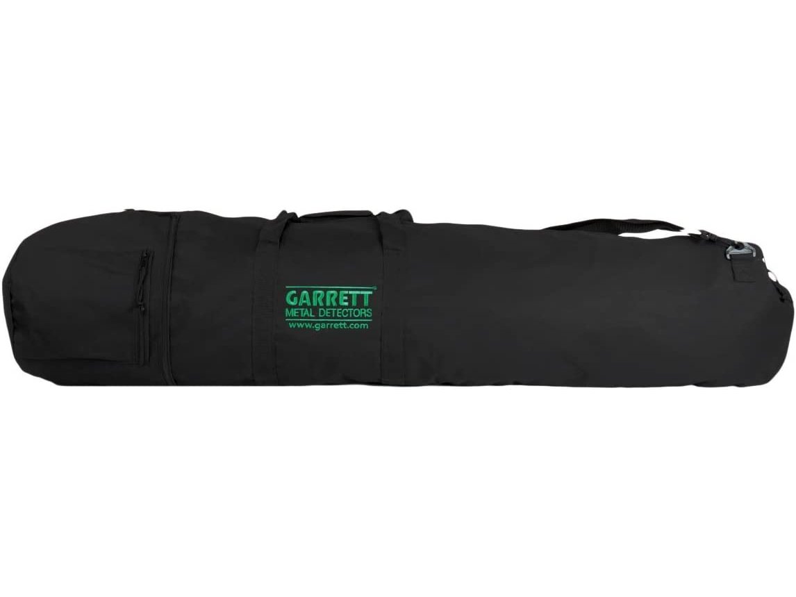 This carry bag is made of reinforced polyester, and measures approximately 50" in length with two zipper pockets. Also includes a convenient shoulder strap and carrying handles with padded handpad for comfort. Sized to hold any current Garrett detector without removing the search coil.
