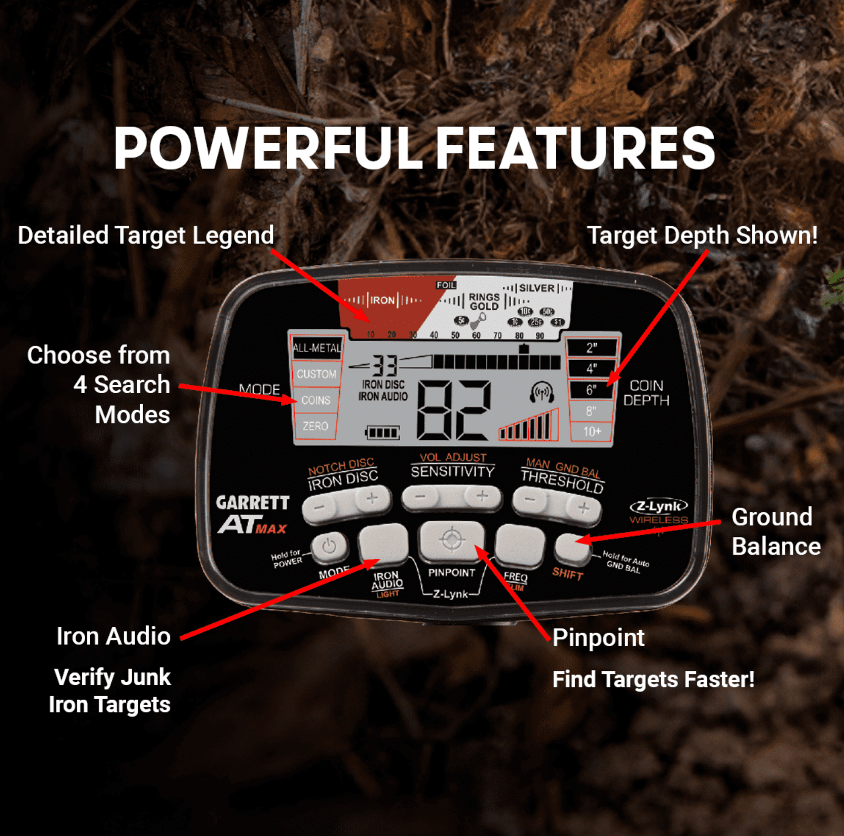 Garrett exclusive feature that audibly identifies discriminated iron while operating in a True All-Metal Mode (also available in the three Discrim Modes).